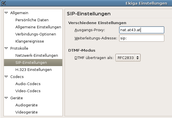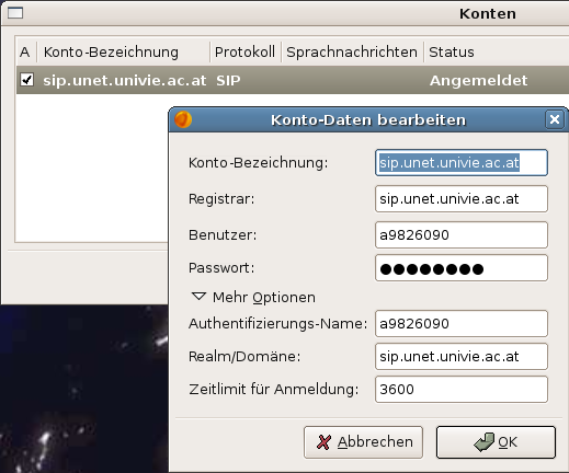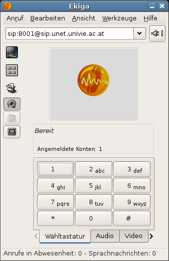 Der SIP Client Ekiga ist der neue Name für das ehemalige Gnomemeeting. AT43 ist ein SIP Provider der Universität Wien.